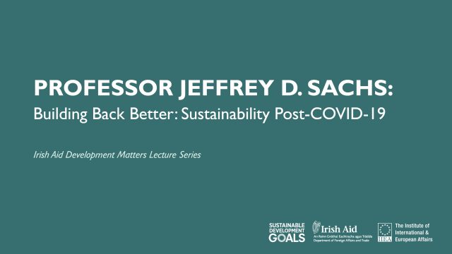 In the sixth lecture of the IIEA Development Matters series supported by Irish Aid, Professor Jeffrey Sachs took stock of the impact of COVID-19 on progress towards the Sustainable Development Goals (SDGs) and the prospects for “building back better” through sustainable and equitable solutions in the global recovery. He outlined some of the steps required for meeting these challenges in the short and long term.