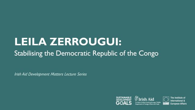 In the final event of the IIEA/ Irish Aid Development Matters series for 2020, Leila Zerrougui, Special Representative of the UN Secretary-General and Head of the UN Stabilisation Mission in the DRC (MONUSCO), took stock of the work of the Mission since its establishment in 2010 in building peace and stability in the country.