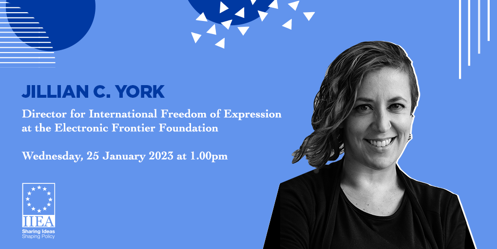 In her address to the IIEA, Jillian York outlined how the internet transformed the ability of citizens to contribute to public discourse, especially for citizens living under authoritarian regimes. However, the internet has also facilitated the spread of harmful content such as disinformation and hate speech. Ms York discussed how platform companies, democratic governments, and authoritarian regimes are responding with increased moderation and censorship of the internet. She assessed the negative consequences that can result and explain how citizens can respond.