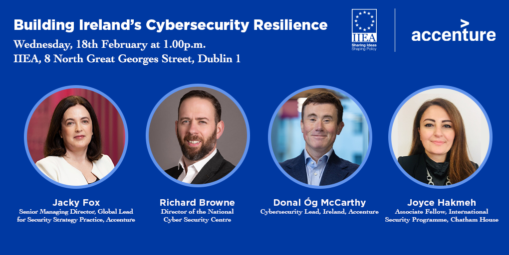 Cybersecurity has become a defining challenge for Ireland and Europe, with digital ecosystems underpinning our economic prosperity, democratic resilience, and the functioning of critical infrastructure. As energy systems, healthcare, financial services, and other systems become more digitally interconnected, the potential societal impacts of cyberattacks grow exponentially. In this panel discussion, organised in conjunction with Accenture, discusses the risks which Ireland and Europe face from a heightened risk environment, and how Europe can augment its resilience to a more complex cyber threat landscape.