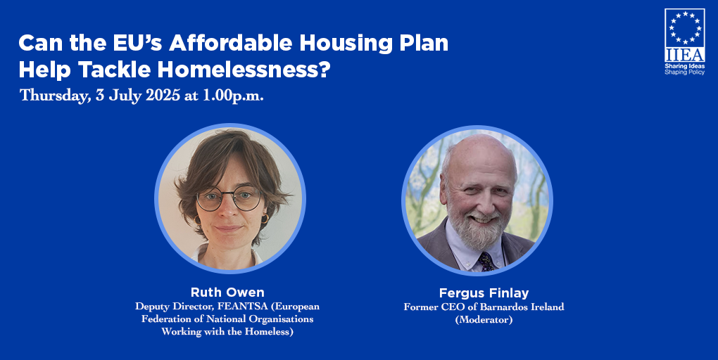 In her address to the IIEA, Ruth Owen, Deputy Director at FEANTSA, examines the European Union’s efforts to address homelessness through its evolving affordable housing agenda. As the EU has no direct competence in housing, the responsibility for policies on and investment in social and affordable housing remains with the Member States. Drawing on over a decade of experience in homelessness policy, she will explore the potential of EU initiatives to support more inclusive and effective housing solutions across Member States, including the European Platform on Combatting Homelessness and the affordable housing initiative as part of the Commission's renovation wave strategy for Europe. She considers the challenges of implementation, the role of national governments, and the need for integrated policy responses to ensure that affordable housing contributes meaningfully to the fight against homelessness.