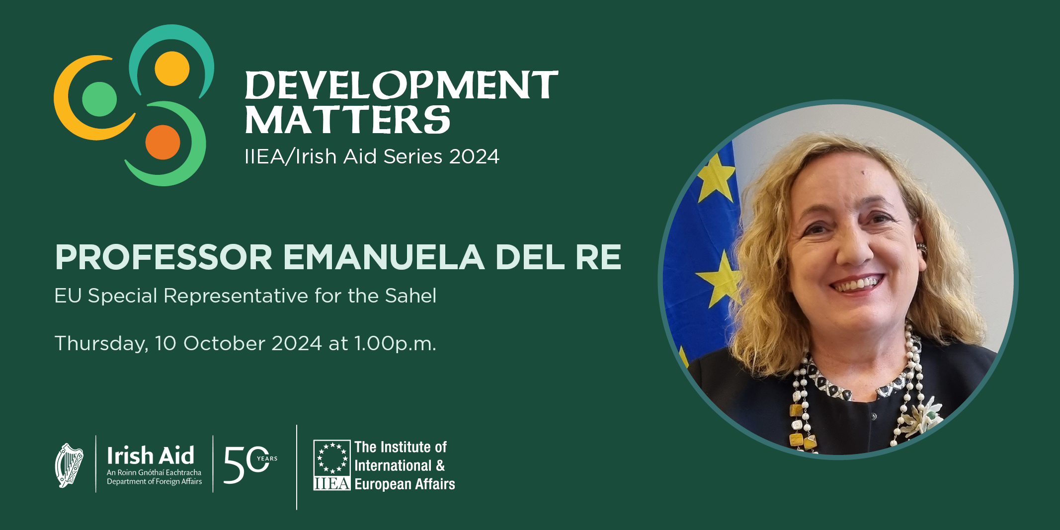 This address by Prof Emanuel Del Re, the EU Special Representative for the Sahel, which is part of the IIEA Development Matters series supported by Irish Aid, focuses on the evolving dynamics of the EU-Africa relationship, with a particular emphasis on the Sahel region. In her address, Prof Del Re explores key strategic areas such as security, development, governance, and migration, highlighting how the EU's comprehensive approach in the Sahel aligns with broader African Union priorities. The discussion delves into the challenges and opportunities of fostering sustainable peace and development in the region, addressing complex issues like violent extremism, climate change, and humanitarian crises.