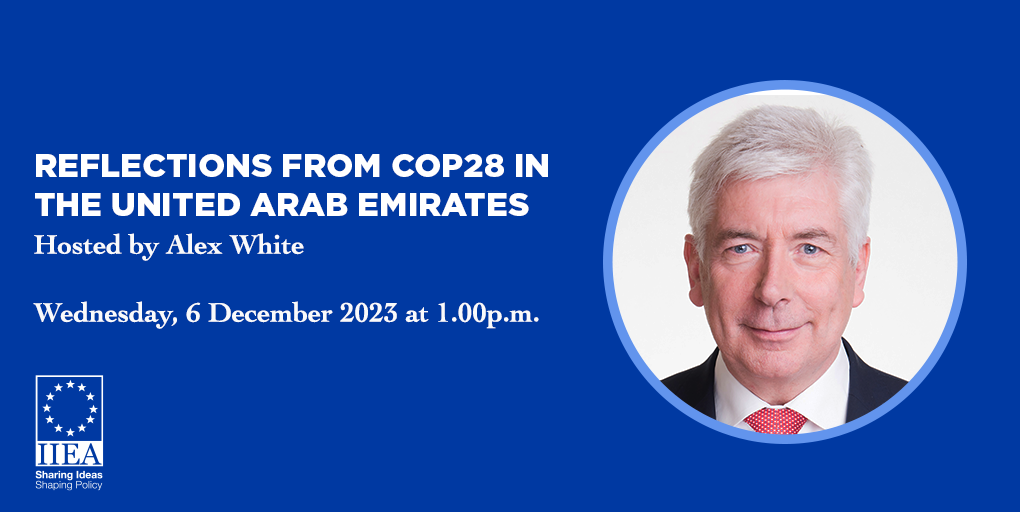 In this IIEA webinar, hosted live from COP28 in Dubai, Alex White, Director General of the IIEA, and a panel of experts assess the progress of COP28 towards achieving global climate change mitigation and adaptation objectives. With the Summit due to conclude on 12 December, Mr White and the panel assess the state of play of ongoing discussions and negotiations, and if the Summit is likely to be successful in keeping hopes of a 1.5 degrees Celsius limit to global warming alive.