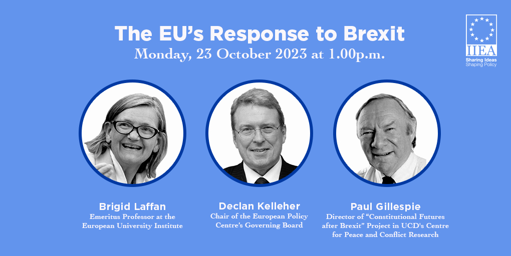 Seven years after the original Brexit vote, the IIEA welcomes two leading Irish voices on the EU to a panel discussion on Prof Brigid Laffan's recent book 'The EU's Response to Brexit'.